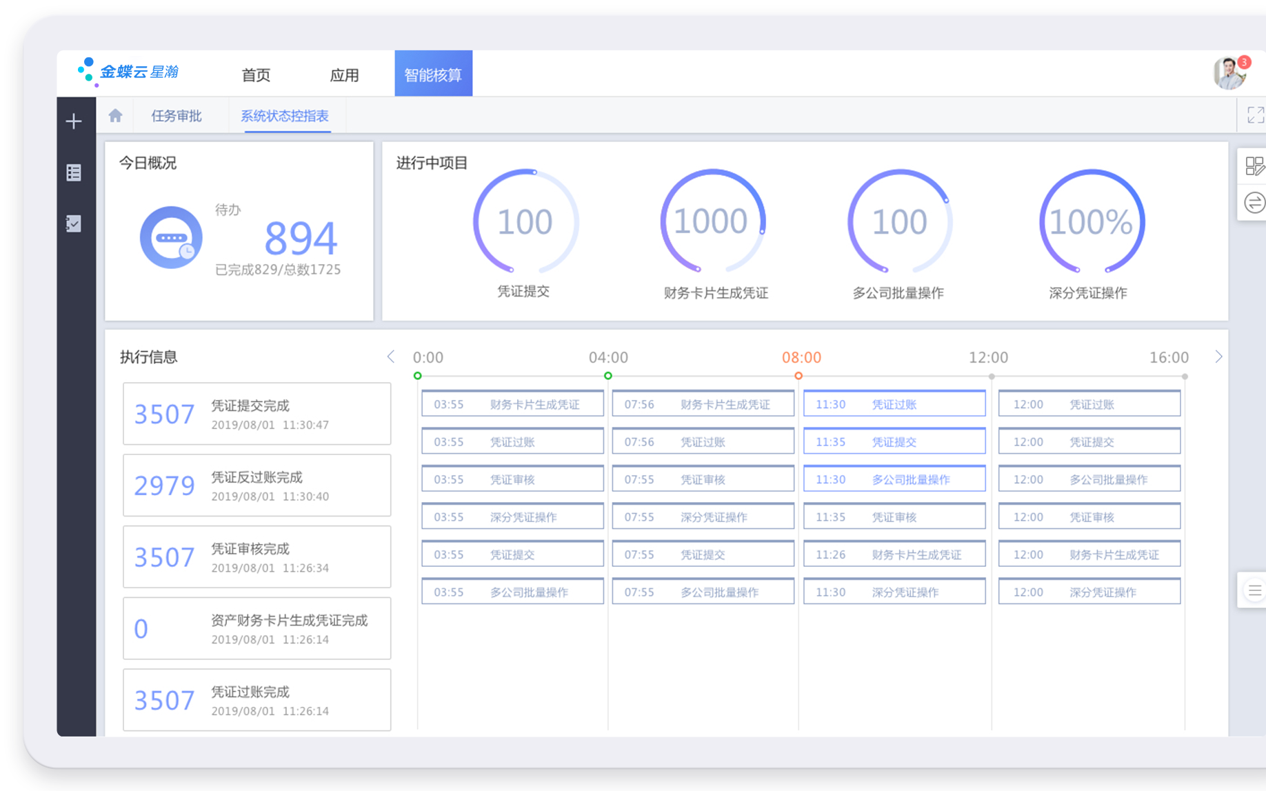 金蝶云?星瀚財務云產品架構涵蓋了費用云、財務會計云、管理會計云、稅務會計云、資金云、預算云、合并云、財務分析云和共享云九大子應用,同時天然集成了工作流、影像、電子檔案等企業數字化轉型的關鍵功能