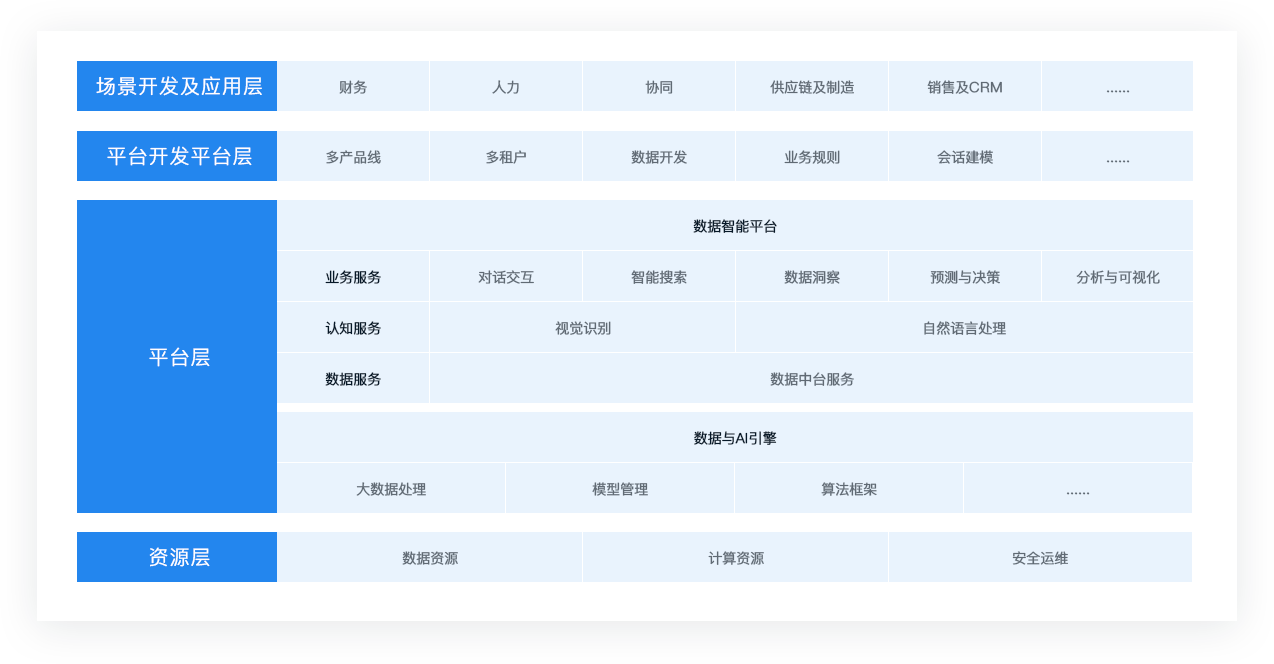 金蝶云·蒼穹借助企業(yè)AI平臺,為企業(yè)提供了財(cái)務(wù)機(jī)器人、智能搜索、數(shù)據(jù)應(yīng)用開發(fā)平臺、票據(jù)識別、人臉認(rèn)證、員工自助服務(wù),助力企業(yè)實(shí)現(xiàn)各個應(yīng)用場景的智能化,打造企業(yè)級AI服務(wù)