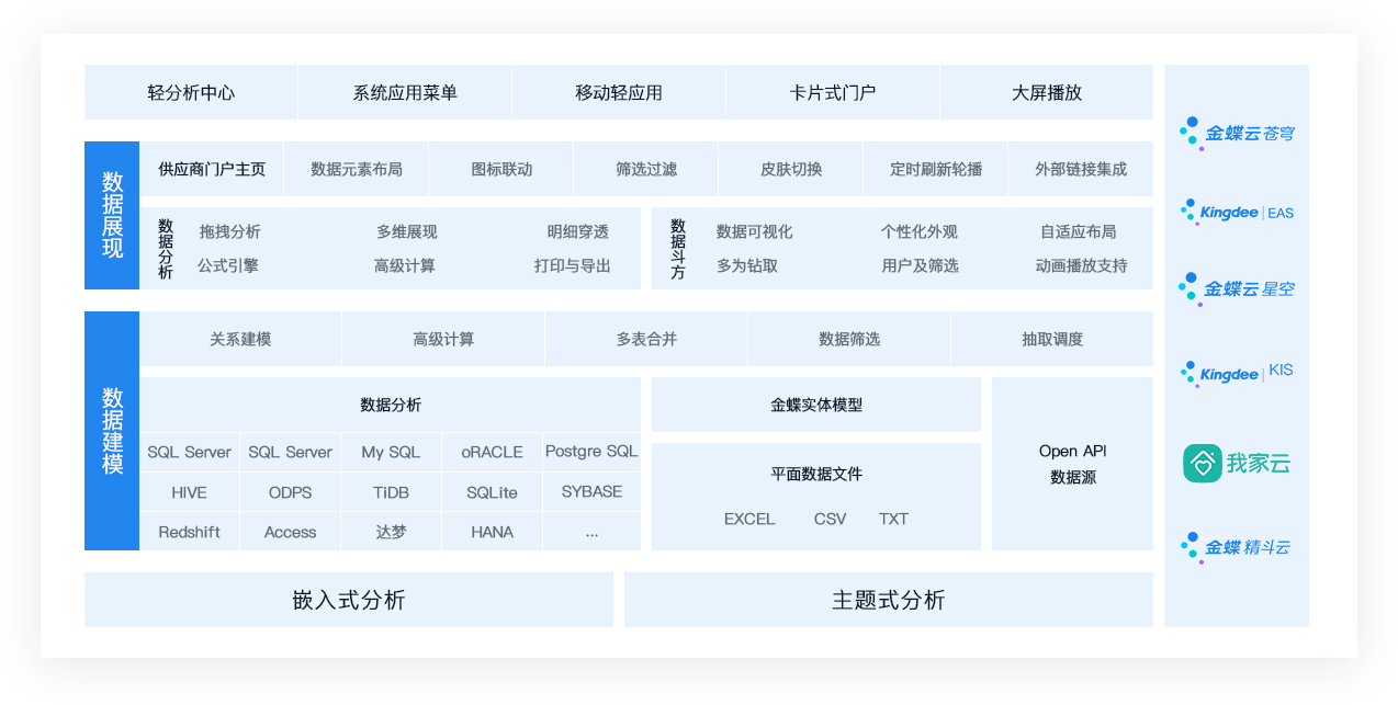 金蝶云·蒼穹數據服務云——輕分析,是金蝶自主研發的,擁有獨立知識產權和核心技術的數據云計算引擎和數據可視化平臺,為業務人員提供了一種輕建模、多維度、高性能的數據分析和數據探索平臺