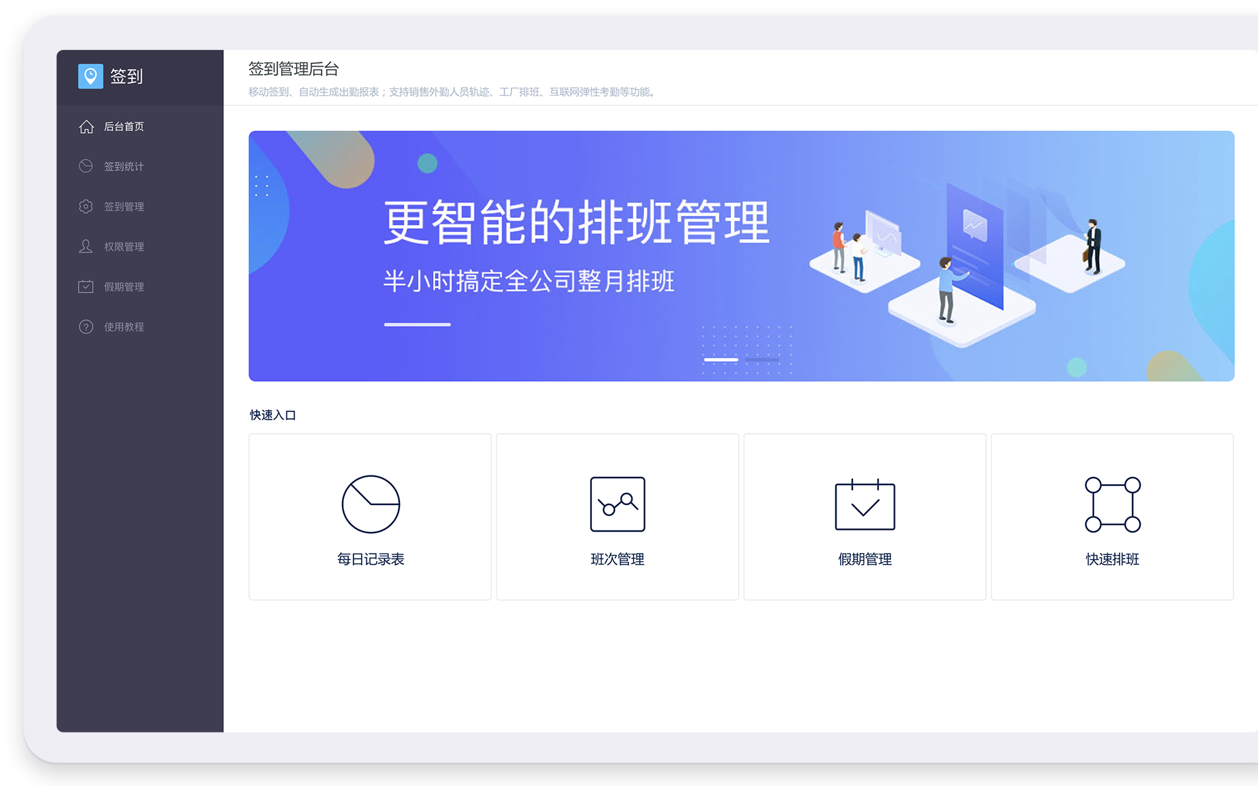 簽到考勤管理全功能,企業管理員工打卡、排班、請假加班、考勤結果。能夠連接金蝶的HR考勤系統,讓您體驗金蝶最專業的考勤管理