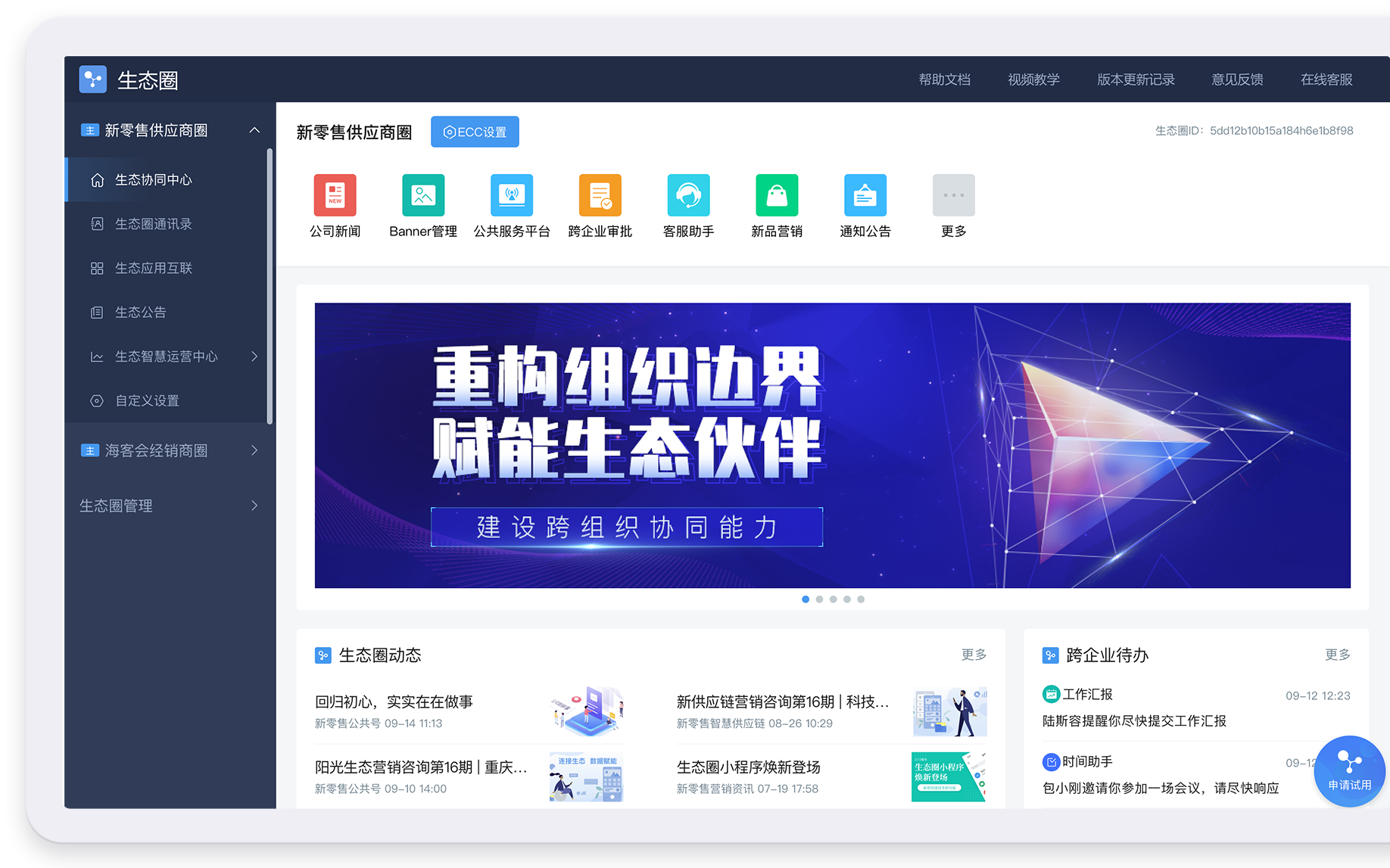 云之家生態圈協同門戶幫助企業連接每一位生態伙伴,助力實現跨企業業務互聯,打造互利共贏的知識共享體系
